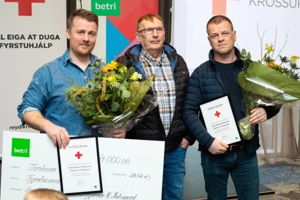 Heiður fyri gott avrik innan fyrstuhjálp 2024 fara eisini til Heina Martin Niclasen og Hjarnar K. Dalsgaard. Tá ið John Haraldsen 13. januar í fjør fekk ein hjartatilburð umborð á Katrin Jóhannu, handlaðu teir báðir skjótt. Í ringum veðri veittu teir John bæði kropsliga og sálarliga hjálp í heilar seks tímar, meðan teir sigldu inn á Tvøroyri.