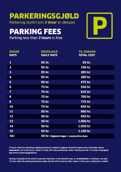 Vága Floghavn boðar frá, at frá 1. mai hækka gjøldini fyri at parkera á parkeringsøkinum hjá Vága Floghavn.